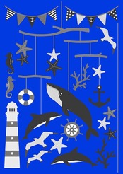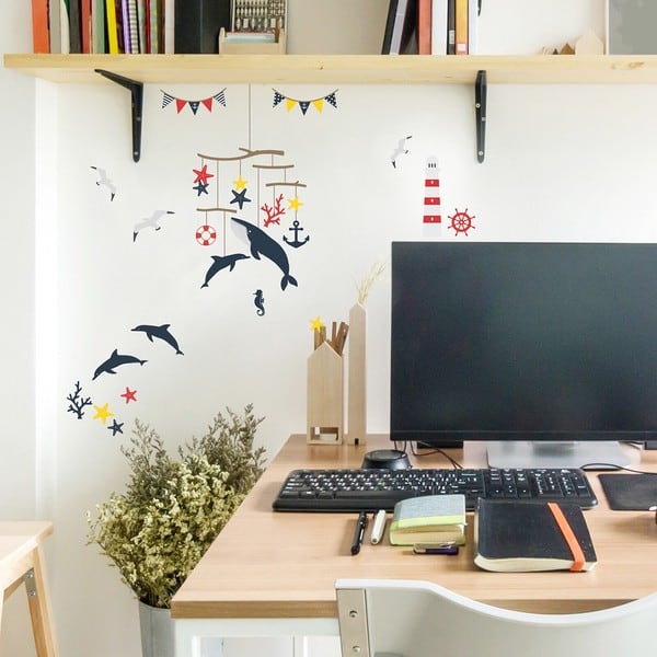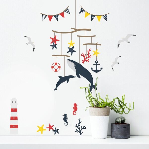 ウォールステッカー 壁紙 シール はがせる デコレーション A4・フチなし・転写 「海の楽しいモビール」おしゃれ/インテリア/海/夏/魚/フラッグ / 家具・インテリア インテリア雑貨 壁面装飾