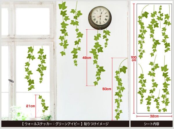 ウォールステッカー 壁紙 シール はがせる デコレーション 大判・1m・フチなし・転写 「グリーンアイビー」おしゃれ/インテリア/植物 / 家具・インテリア インテリア雑貨 壁面装飾
