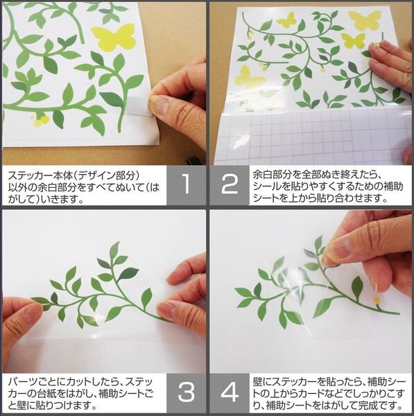 シールのデザイン部分以外の余白は自分でぬく、DIY的な要素の入ったウォールステッカーになっています