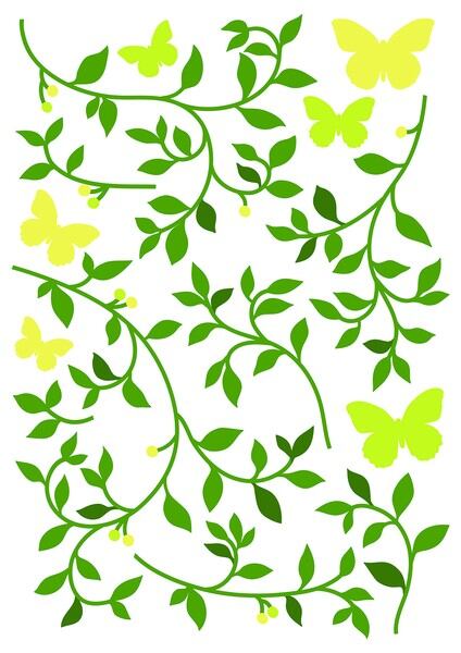 ウォールステッカー 壁紙 シール はがせる デコレーション A4・フチなし・転写 「ツタに集まる蝶々」おしゃれ/インテリア/蝶々/植物 / 家具・インテリア インテリア雑貨 壁面装飾