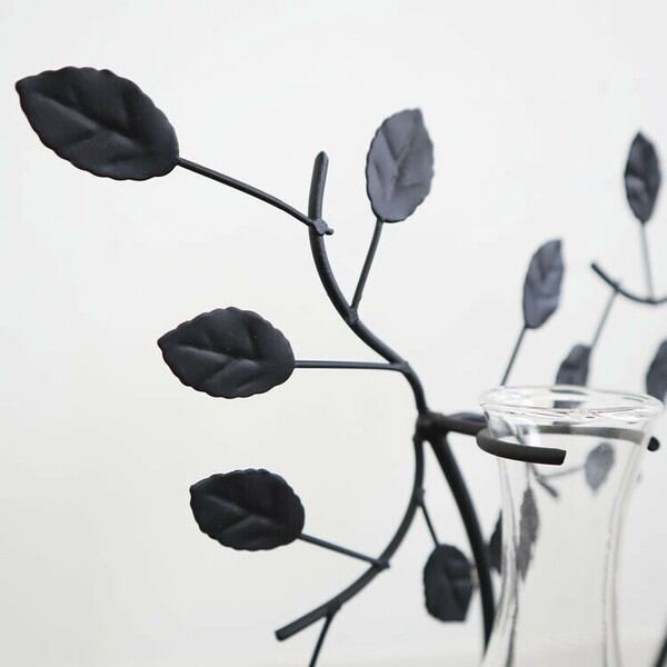 二つのガラス花瓶が付いたモダンテイスト一輪挿し(アイアンフラワーベース、花瓶)です(造花セット)