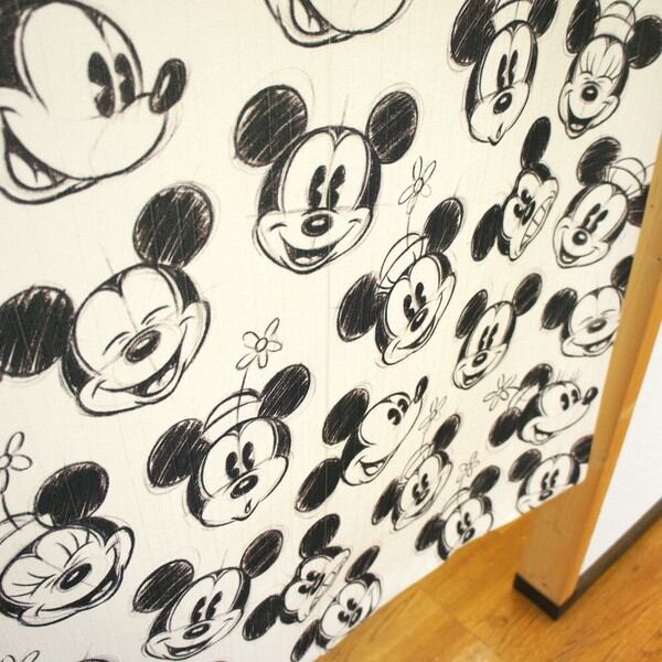 のれん 受注生産 目隠し Disney「スケッチ(フェイス)」85×150cm 日本製 ディズニー / 家具・インテリア ファブリック・敷物