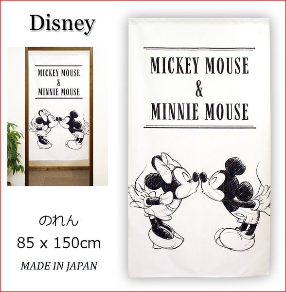 のれん 受注生産 目隠し Disney「ミッキー&ミニー」85×150cm 日本製 ディズニー / 家具・インテリア ファブリック・敷物