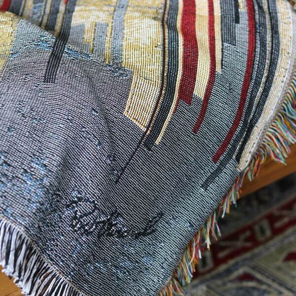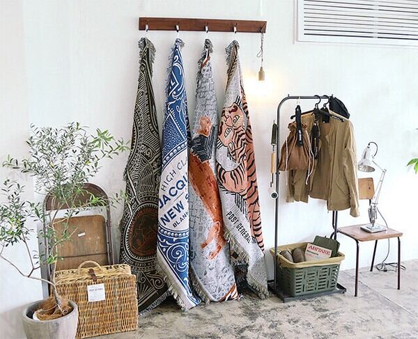 ソファやベッドサイドでのインテリアケットとしてはもちろん、芝生に直接敷いてピクニックラグとして使ったり、アウトドアシーンでのひざ掛けや、羽織るオールシーズンケットとしてもお使い頂けます