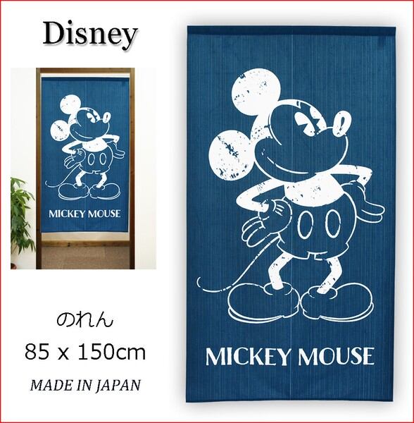 のれん 受注生産 目隠し Disney「ミッキー_ホワイトライン」85×150cm 日本製 ディズニー / 家具・インテリア ファブリック・敷物