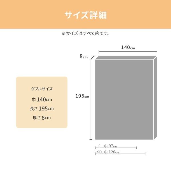 ・D(ダブル)サイズ:約W140XD195XH8cm