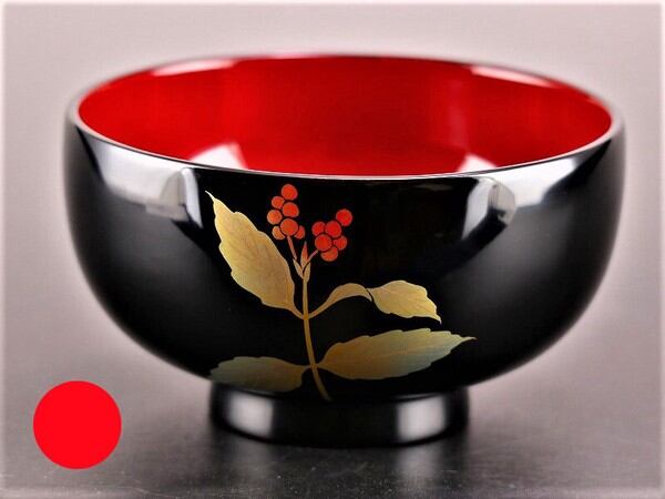 誕生花付き汁椀 朱 12月15日 千両(センリョウ) / 生活雑貨 食器・キッチン 碗・椀