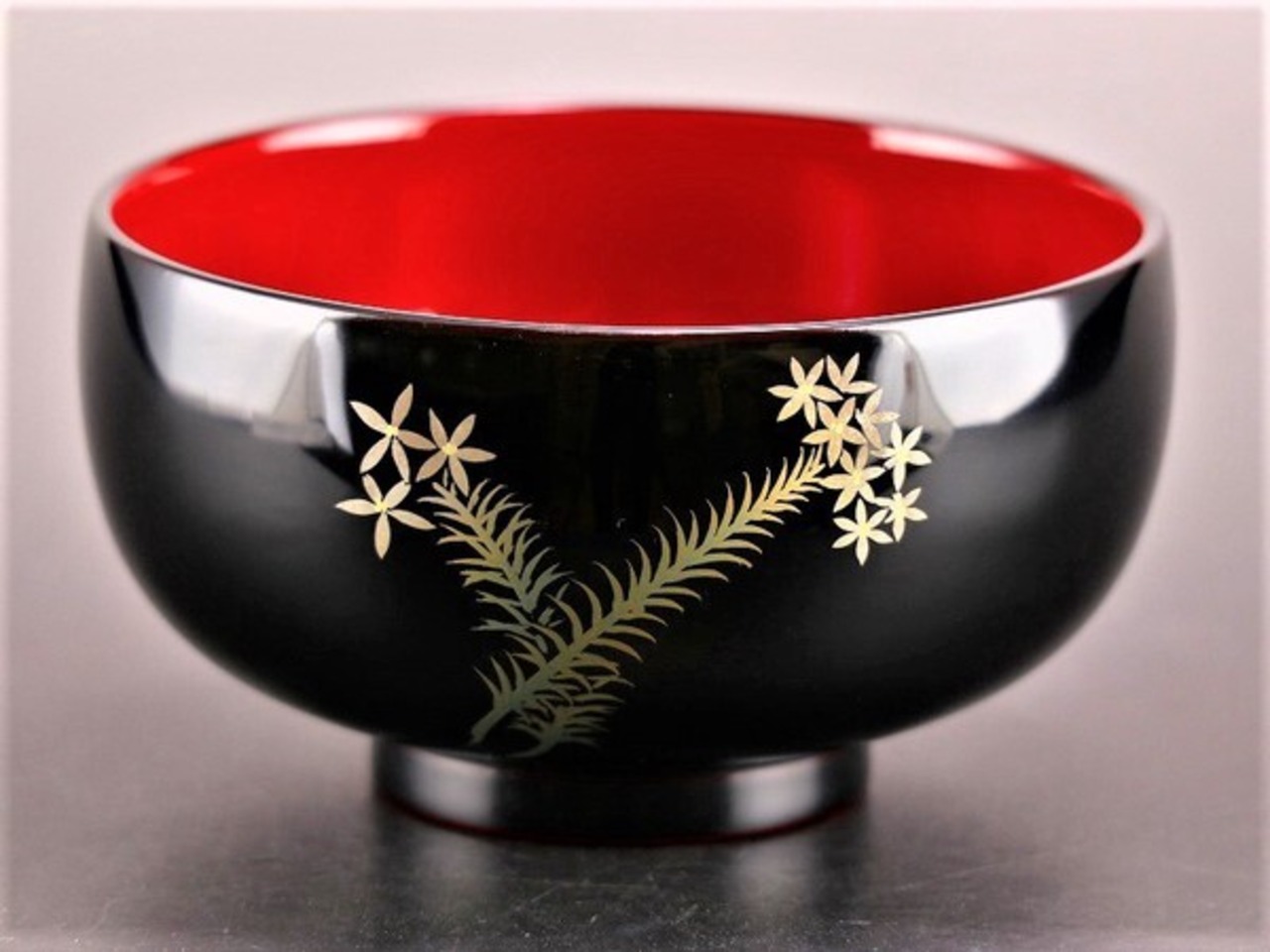 誕生花付き汁椀 黒 12月11日 万年草(マンネングサ) / 生活雑貨 食器・キッチン 碗・椀