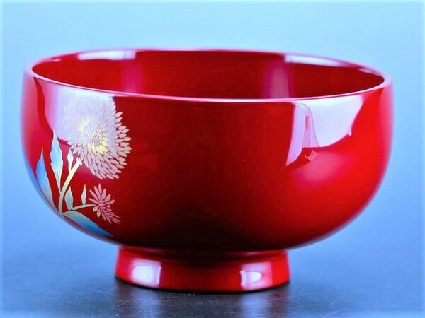 誕生花付き汁椀 朱 11月28日 蝦夷菊(エゾギク) / 生活雑貨 食器・キッチン 碗・椀