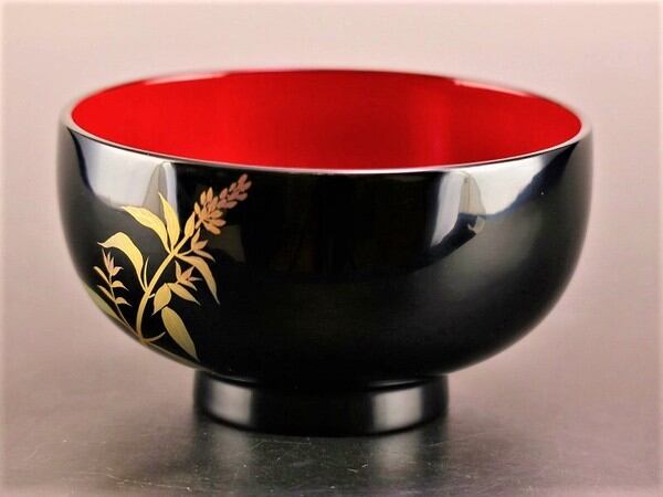 誕生花付き汁椀 黒 10月15日 目箒(メボウキ) / 生活雑貨 食器・キッチン 碗・椀