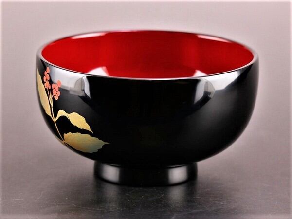 誕生花付き汁椀 黒 12月15日 千両(センリョウ) / 生活雑貨 食器・キッチン 碗・椀