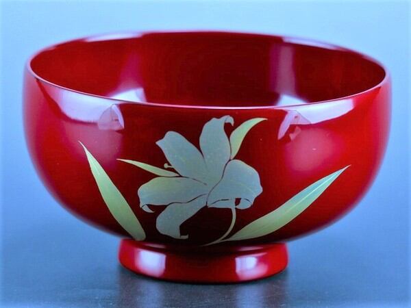 誕生花付き汁椀 朱 11月18日 日本の百合 / 生活雑貨 食器・キッチン 碗・椀