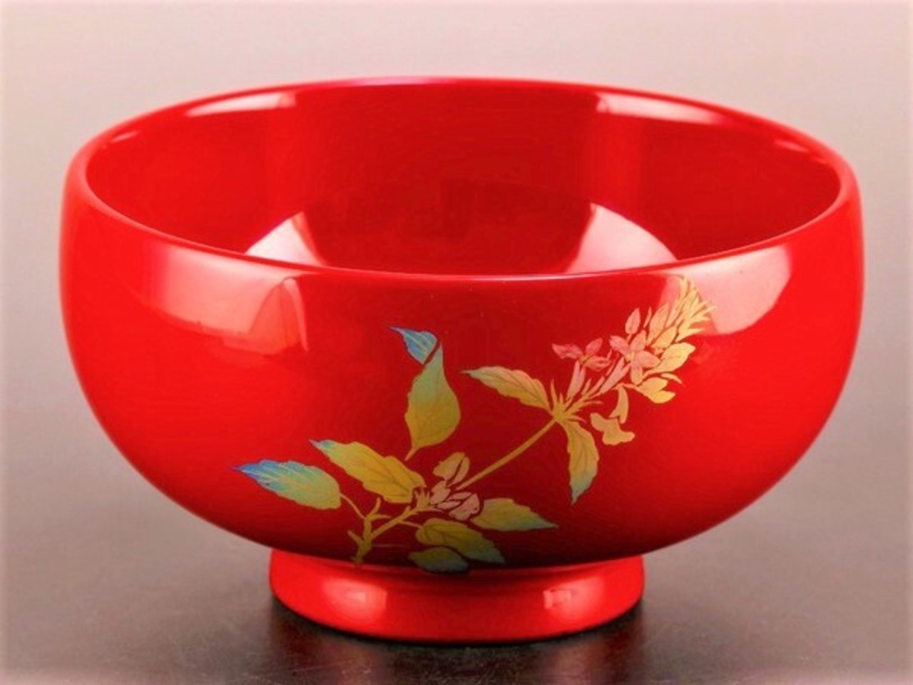 誕生花付き汁椀 朱 8月14日 勝紅草(カッコソウ) / 生活雑貨 食器・キッチン 碗・椀