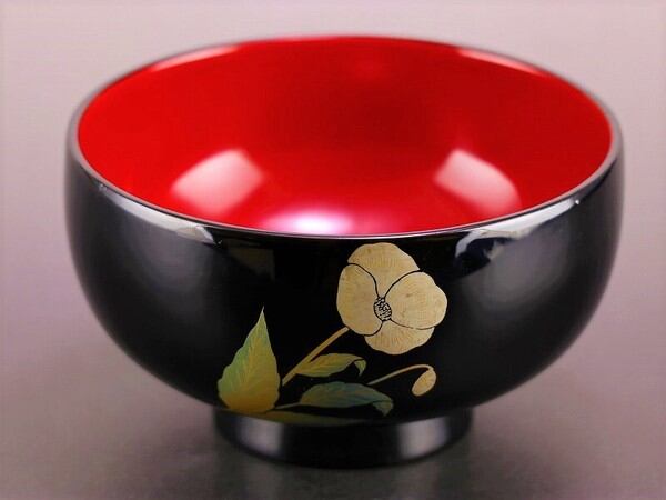 誕生花付き汁椀 黒 7月3日 白芥子(ケシ) / 生活雑貨 食器・キッチン 碗・椀