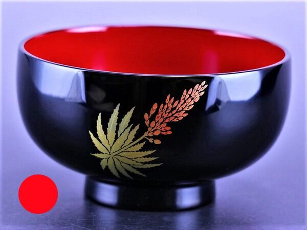 手にぴったり収まるサイズの汁椀。漆塗装なので、熱い汁物を入れても熱が伝わりにくい!お色は黒内朱と朱色の2色。こちらは全体が朱色で底が黒色。お椀の底には九月十一日の文字入りです。