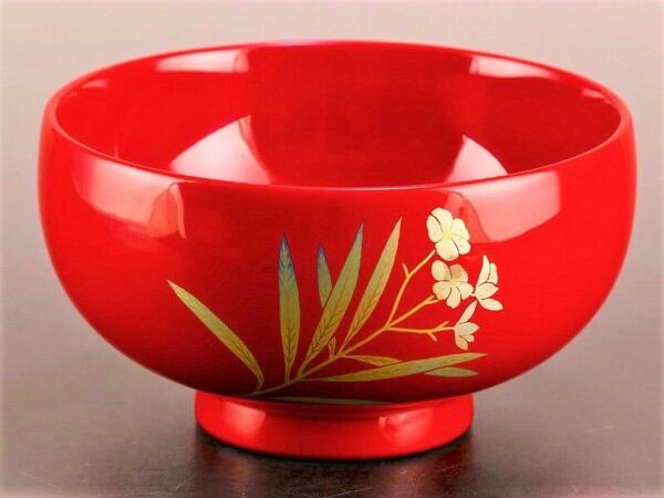 誕生花付き汁椀 朱 8月12日 夾竹桃(キョウチクトウ) / 生活雑貨 食器・キッチン 碗・椀