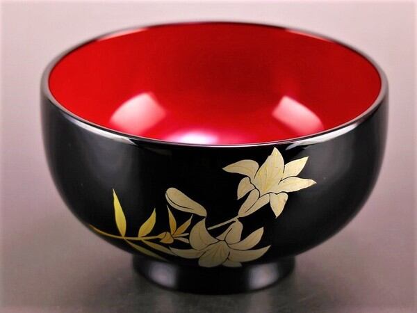 誕生花付き汁椀 黒 7月13日 鉄砲百合 / 生活雑貨 食器・キッチン 碗・椀