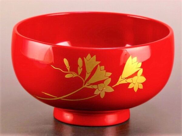 誕生花付き汁椀 朱 8月20日 フリージア / 生活雑貨 食器・キッチン 碗・椀