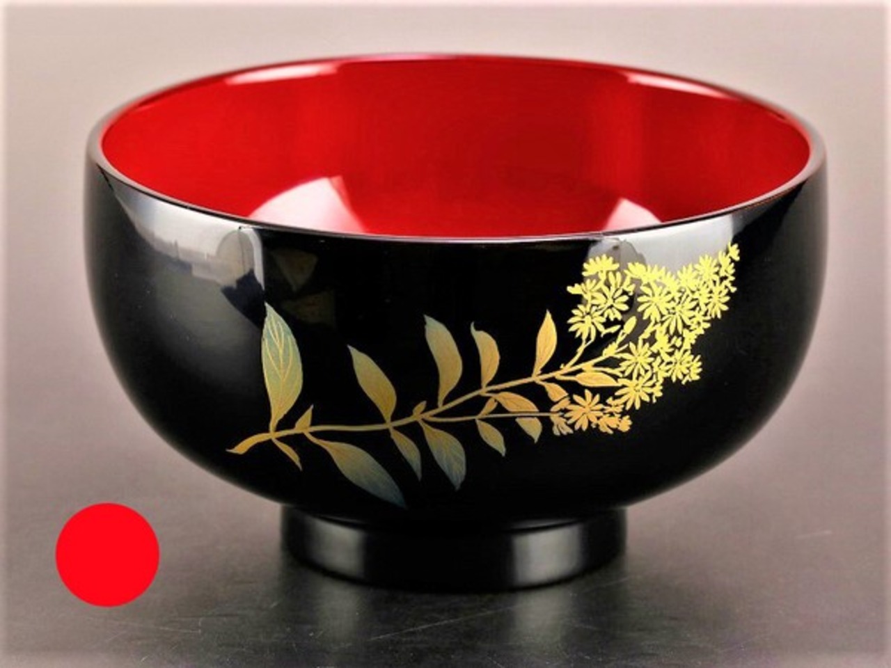 誕生花付き汁椀 朱 8月13日 秋の麒麟草(アキノキリンソウ) / 生活雑貨 食器・キッチン 碗・椀