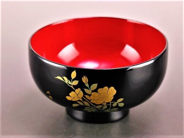 誕生花付き汁椀 黒 7月21日 黄薔薇 / 生活雑貨 食器・キッチン 碗・椀