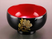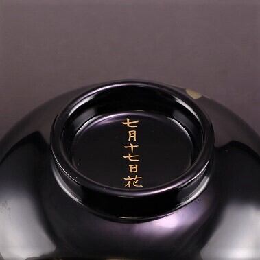 手にぴったり収まるサイズの汁椀。漆塗装なので、熱い汁物を入れても熱が伝わりにくい!お色は黒内朱と朱色の2色。こちらは表が黒色でお椀の中が朱色。お椀の底には七月十七日の文字入りです。