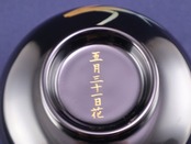 手にぴったり収まるサイズの汁椀。漆塗装なので、熱い汁物を入れても熱が伝わりにくい!お色は黒内朱と朱色の2色。こちらは表が黒色でお椀の中が朱色。お椀の底には五月三十一日の文字入りです。