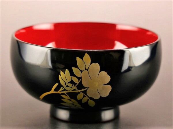 誕生花付き汁椀 黒 10月27日 薔薇(ブライアーローズ) / 生活雑貨 食器・キッチン 碗・椀
