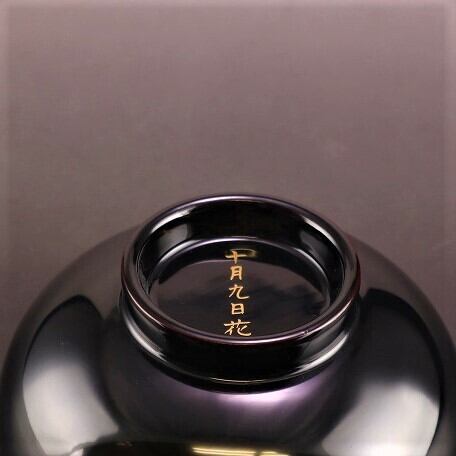 手にぴったり収まるサイズの汁椀。漆塗装なので、熱い汁物を入れても熱が伝わりにくい!お色は黒内朱と朱色の2色。こちらは表が黒色でお椀の中が朱色。お椀の底には十月九日の文字入りです。