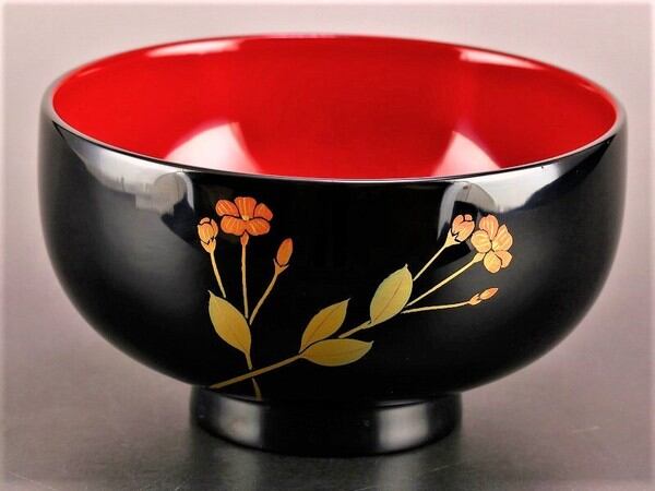 誕生花付き汁椀 黒 8月19日 酔仙翁(スイセンノウ) / 生活雑貨 食器・キッチン 碗・椀