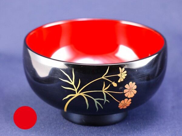 誕生花付き汁椀 朱 4月13日 波斯菊(ハルシャギク) / 生活雑貨 食器・キッチン 碗・椀