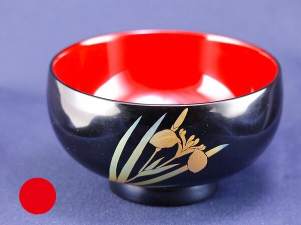 誕生花付き汁椀 朱 4月17日 黄菖蒲(キショウブ) / 生活雑貨 食器・キッチン 碗・椀