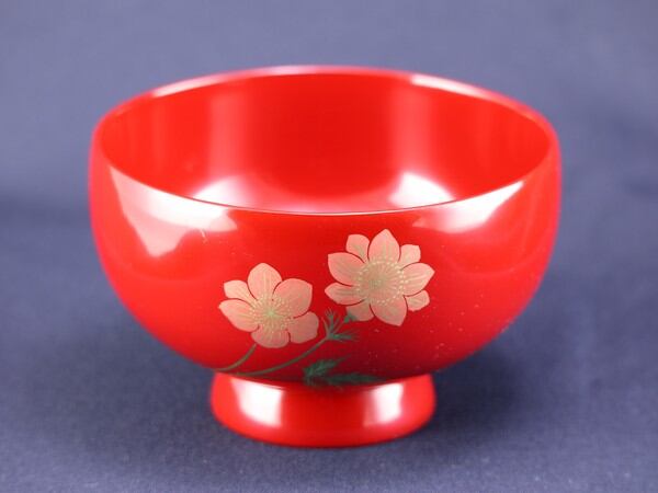 誕生花付き汁椀 朱 4月2日 アネモネ / 生活雑貨 食器・キッチン 碗・椀