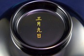 手にぴったり収まるサイズの汁椀。漆塗装なので、熱い汁物を入れても熱が伝わりにくい!お色は黒内朱と朱色の2色。こちらは表が黒色でお椀の中が朱色。お椀の底には三月九日の文字入りです。