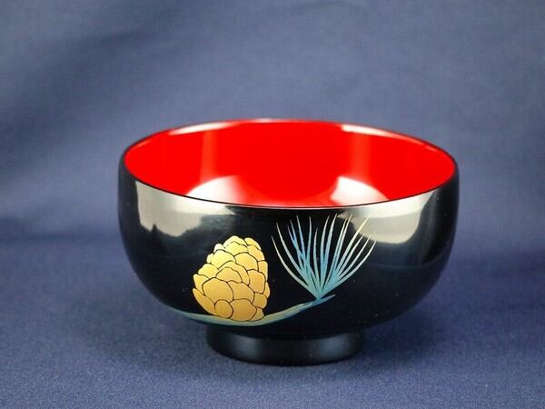 誕生花付き汁椀 黒 3月9日 唐松(カラマツ) / 生活雑貨 食器・キッチン 碗・椀