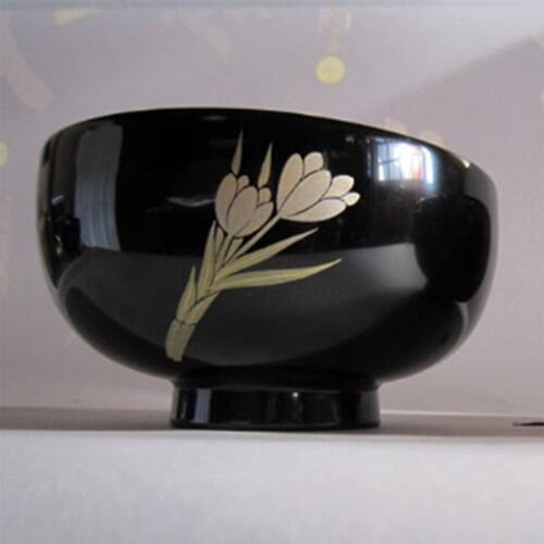 誕生花付き汁椀 黒 1月3日 花サフラン / 生活雑貨 食器・キッチン 碗・椀