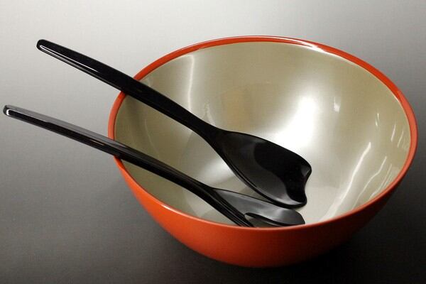 モダンなデザインのサラダボウルとサーバーのセット。サラダはもちろん、夏はそうめんや冷やしうどんなど、色々な料理が楽しめます。