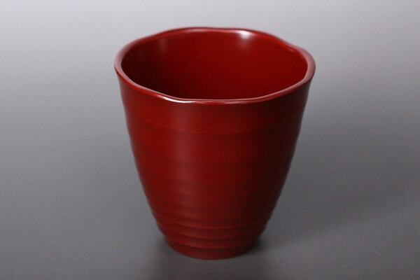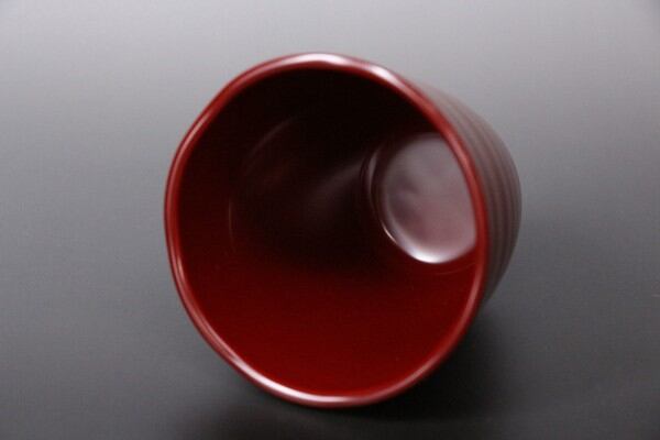 口当たりが柔らかく保温性があります。波紋のようなフォルムは持つ手になじみ使いやすい。古代朱、溜の2色掲載しております。