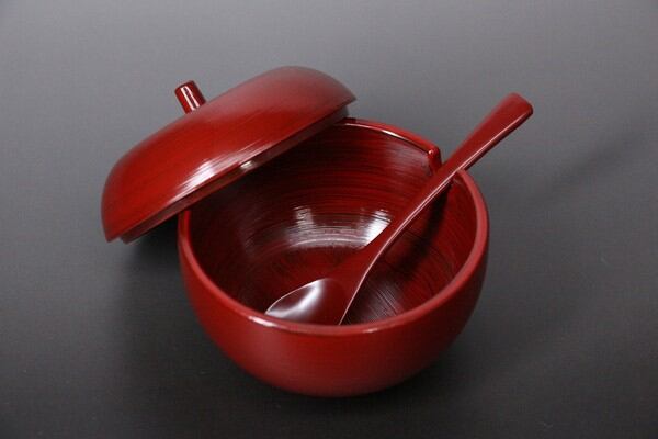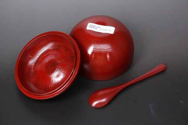 リンゴの様な形をした可愛らしいシュガー入。漆塗りならではの美しい色合いが特徴です。