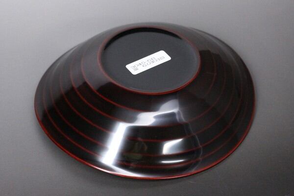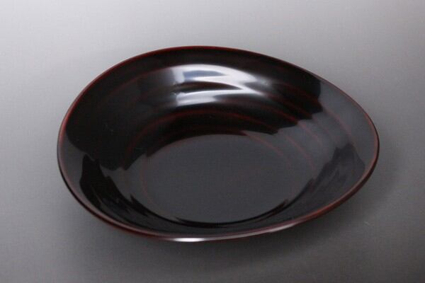 水面に美しく映る月のイメージを表現した、趣きのある盛皿です。溜色は、上塗り漆の薄く掛かった部分に下地の朱色がほんのり出てきてやわらかなグラデーションに。時間がたつにつれて飴色の漆が透けて明るい溜色になり、変化を楽しめます。