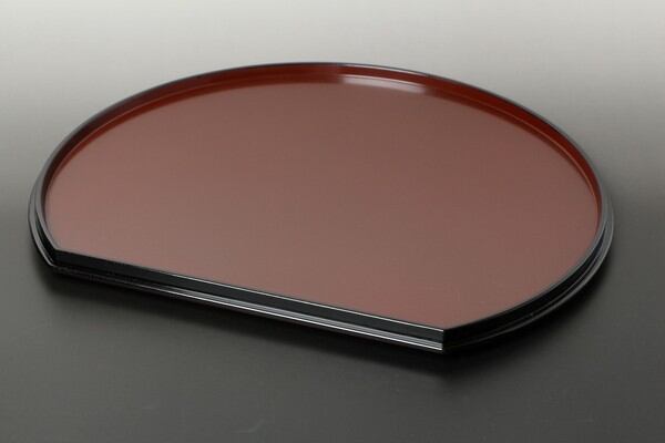 尺一 半月両面盆 茶乾漆 木目黒天朱 / 生活雑貨 食器・キッチン キッチン雑貨 お盆・トレー