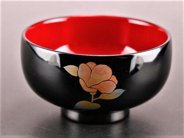 誕生花付き汁椀 黒 11月の花 椿(ツバキ) / 生活雑貨 食器・キッチン 碗・椀