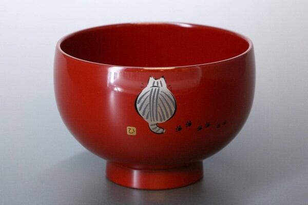 猫 汁椀 朱 / 生活雑貨 食器・キッチン 碗・椀