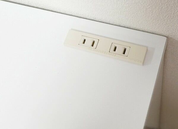 ●1500W2口コンセント付でキッチンで電機ケトル、洗面所でドライヤーが使用できます