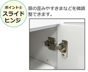 ●扉のひがみや、すきまを調整できるスライドヒンジ採用