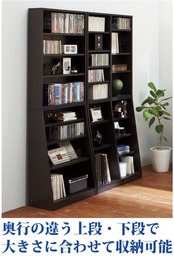 ●奥行が浅い上段はCDやDVD、文庫本などの収納に、奥行の深い下段は百科事典などを収納できます