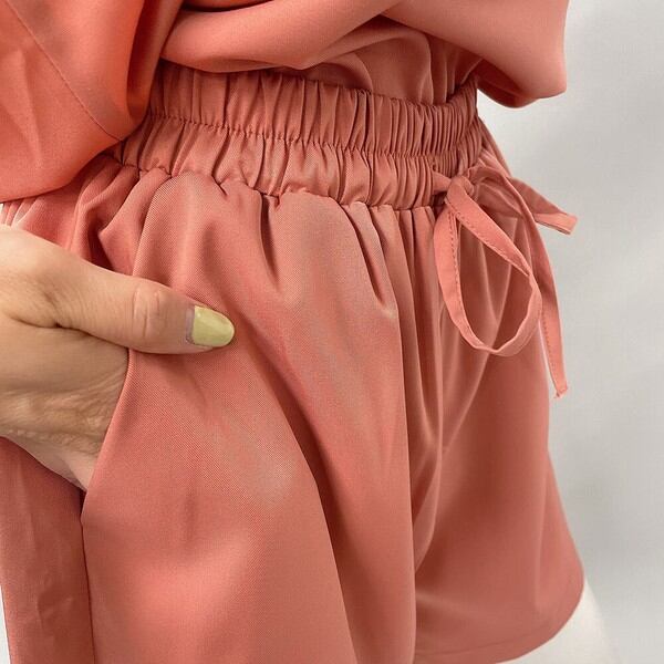 キャミとショーパンでラフなスタイルにシャツジャケットをプラスし、カジュアル過ぎないオシャレなコーデに◎単品使いも出来るのでコーデの幅も広がります♪