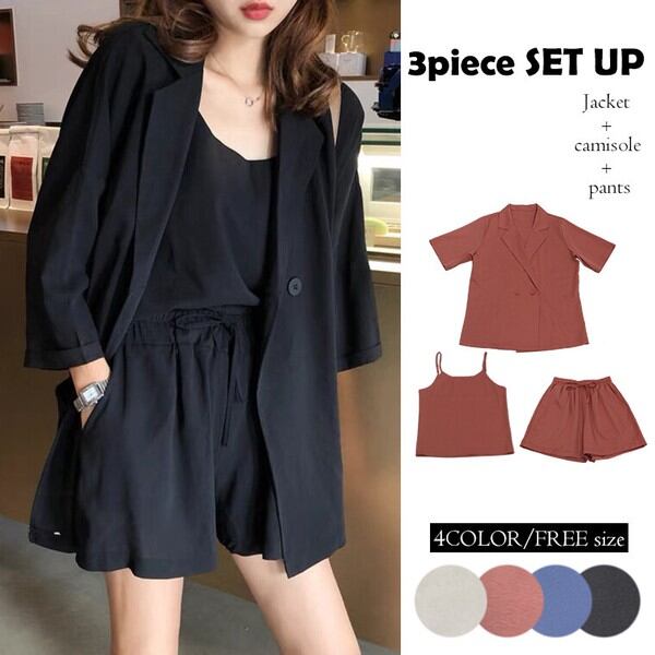 3ピース/ジャケット/テーラー/シャツ/半袖/ショーパン/キャミ/セット/セットアップ/2120028/トップス/夏/夏服/靴/韓国/韓国/個性的/夏服/韓国/ロンT/スキニー/フレアパンツ/シアー/プチプラ/韓国ファッション/レディース/ファッション/靴/大きいサイズ/厚底/厚底スニーカー/くつ/ストリート/人気/カットソー/タンクトップ/キレイめ/大人/大人カジュアル/お洒落/セクシー/ストリート/バックプリント/肩開き/韓国/通販/人気/黒/かっこいい/