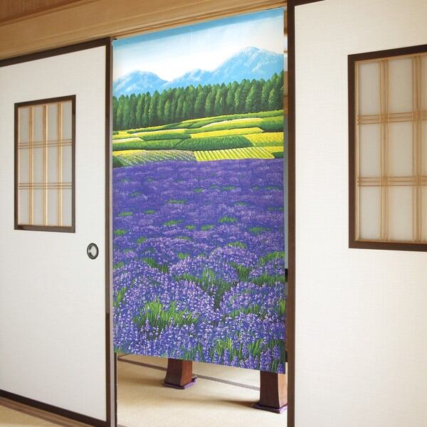 のれん 受注生産 目隠し 「ラベンダー畑」85x150cm 日本製 風景 景色 / 家具・インテリア ファブリック・敷物