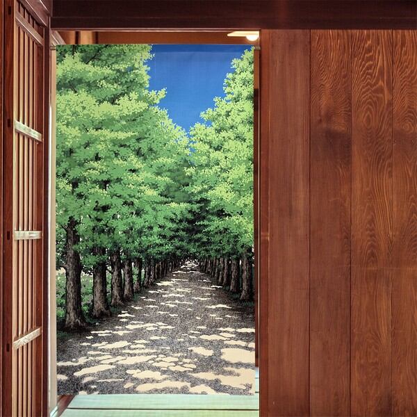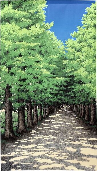 のれん 受注生産 目隠し 「木漏れ日の並木道」85x150cm 日本製 風景 景色 / 家具・インテリア ファブリック・敷物