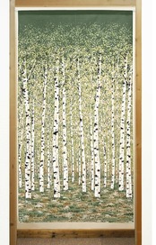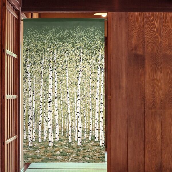 のれん 受注生産 目隠し 「白樺林」85x150cm 日本製 風景 景色 / 家具・インテリア ファブリック・敷物